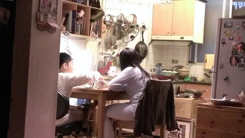 禮拜天下午, 我躺在沙發上小憩...hunt跟nini在餐桌上邊鬥嘴邊複習功課,